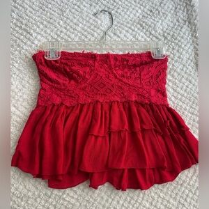 Free People Red Lace Ruffle Mini Top