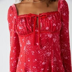 Free People Red Long Sleeve Peasant Mini Dress Small