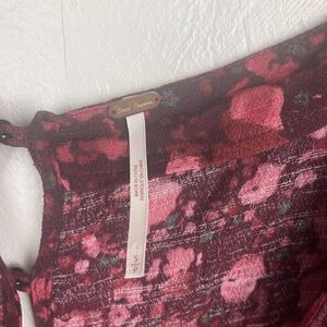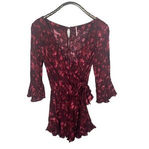 Free People Red Orange Purple Floral Ruffle Romper Viscose Rayon Size Small