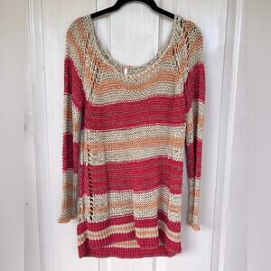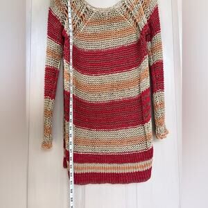 Free People Red, Orange and Cream Knit Sweater with Striped Pattern | Size S P
