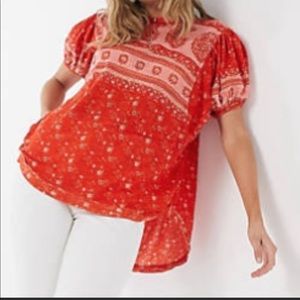 Free People Red Patterned Top