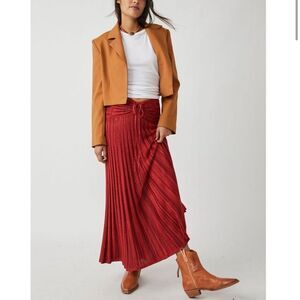 Free People Red Pleated Convertible Maxi Skirt Midi Dress Boho Beach Festival