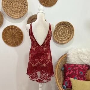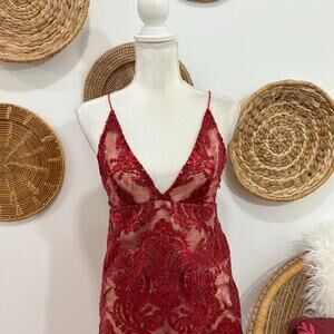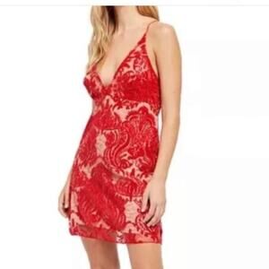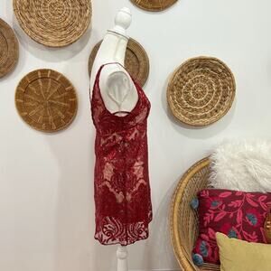 Free People Red Plunge V-Neck Lined Sequins Sleeveless Mini Dress 0