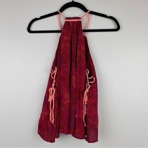 Free People Red Season In The Sun Halter Lace Up Tank Top Size XS