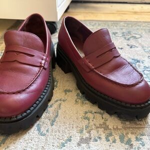 Experience timeless elegance with Free People's red loafers, featuring a classic slip-on design and a decorative penny keeper strap. Crafted from high-quality leather, these shoes offer a polished finish perfect for formal occasions.