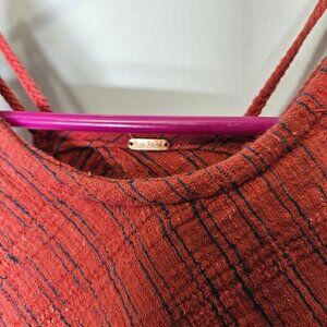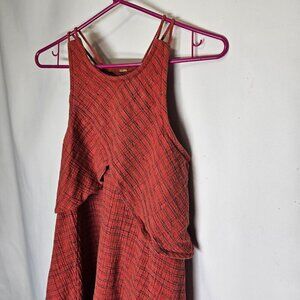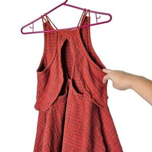 Free People Red Striped Linen Cotton Blend Sleeveless Dress Small No Size Tag