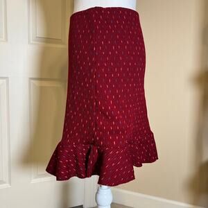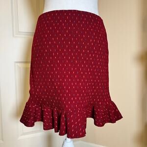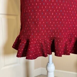 Free People Red Sweater Skirt Ruffle Bottom Pink and Blue Dash Print Size Medium