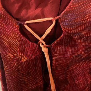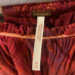 Free People dark red sleeveless blouse. Has light orange string detailing around the neck, and lacing on both side (photo 3). Flowy, can fit both sizes S and M. Very good condition, only worn 1 time.