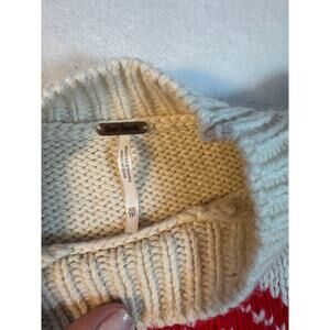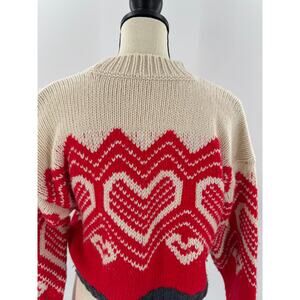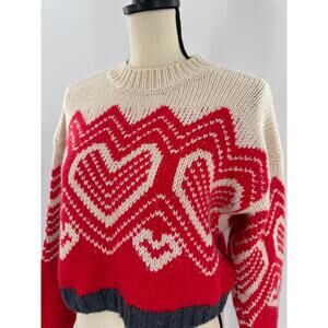 Free People Red White Heart Sweater Crop XS Oversized S M I heart you Fair Isle