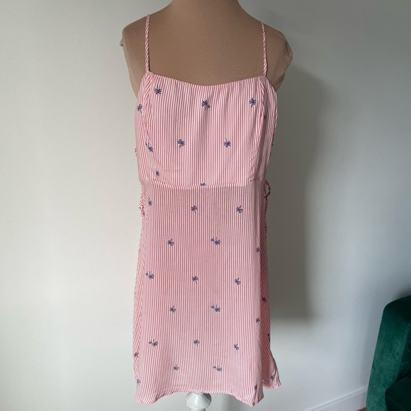 Free People Red White Pinstripe Palm Tree Print Side Ties Mini Dress Size Med