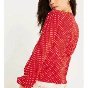 Free People Red White Retro Polka Dot Long Sleeve Love Street Top Size XS