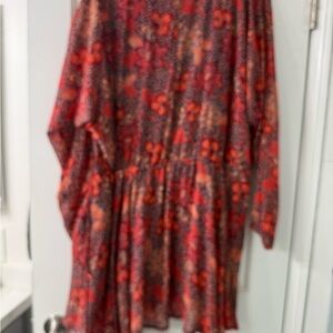 Free People Red and Blue Floral Long Sleeve Mini Dress Large