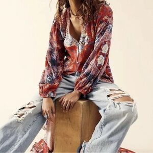 Vibrant floral midi dress. Features long sleeves and a flowing silhouette. Perfect for any occasion.