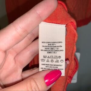 Free People Red/Orange Linen Blend 1 Shoulder Loose Lightweight Top Small