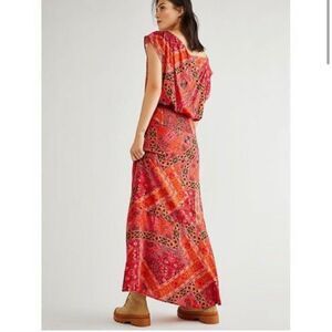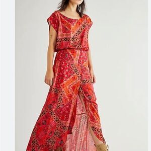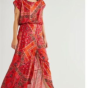 Free People Red Printed Blakely Tulip Maxi Dress Size S New with out tag