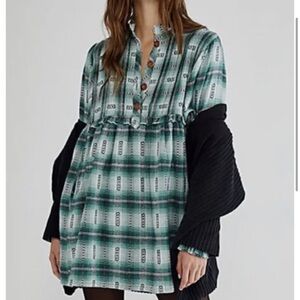 Redwood Flannel Mini Dress Babydoll Ruffled Plaid w/Pockets