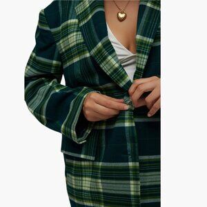 Free People Reggie Oversized Blazer Green Combo Plaid Size Small NWOT