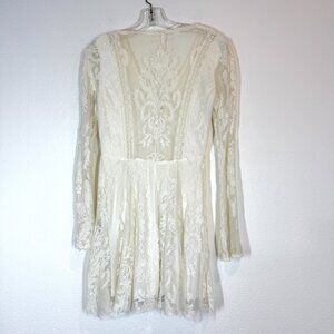 Free People Reign Over Me Embroidered Lace Long Sleeve Mini Off White or Cream Dress 2 (Modeled in bright White)