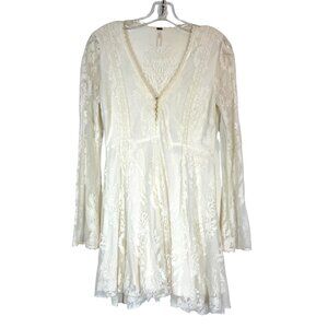 Free People Reign Over Me Mini Dress Embroidered Cottagecore Lace Long Sleeve