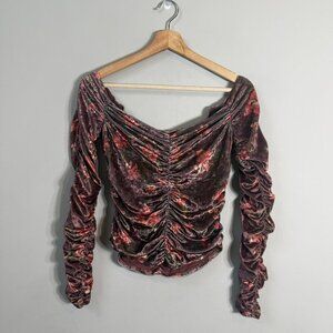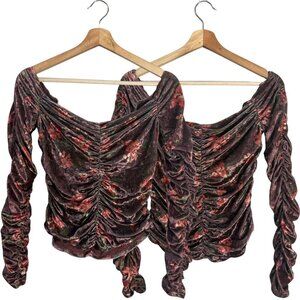 Free People Reina Floral Velvet Off the Shoulder Top Women's Small Brown Ruched