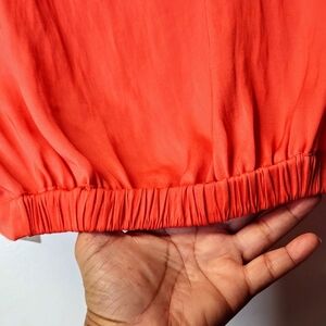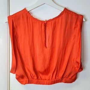 . Draped top with cuffed cap sleeves and elastic hem in back