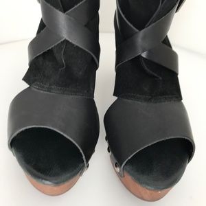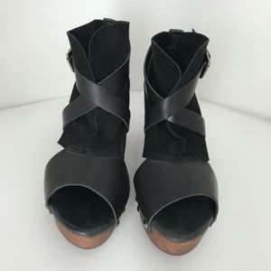 Free People Rendering Platform Leather Crisscross Open Toe Clogs Black 9.5/40