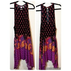 Free People Rendezvous Girl Slip Dress Black Purple Sz M Boho Asymmetrical