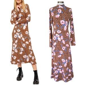 Free People Retro Romance Leopard Floral Maxi Dress Size Medium Long Sleeve