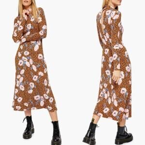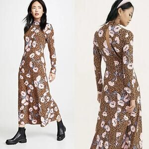 Free People Retro Romance Midi Dress In Brown Floral-Multi Camel Combo Size XS