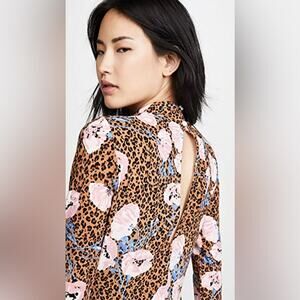This irresistible high-neck dress is covered in a feline-and-floral print, elevating your everyday style.
