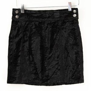 Free People Retro Soft Mini Skirt Velvet High Waist Button Accent Black Size 26