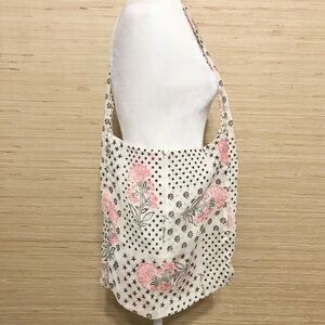 Free People Reusable Cotton Gauze Floral Star Dot Print Hobo Bag- GUC with no call outs.