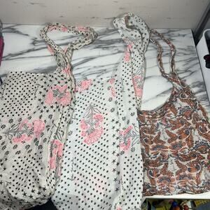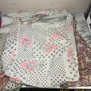 Free People Reusable Tote Bag Linen Lightweight Floral Shopping Bags Large Beach lot of 3 boho travel casual farmer’s market