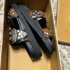 Free People Revelry Studded Slide Sandal in Black/Tan