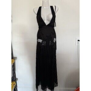 Free People Revolve Celeste Maxi Dress 12 Black Womens Halter Embroidered NWT