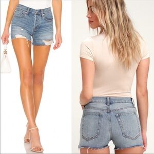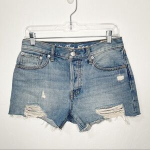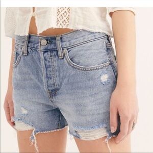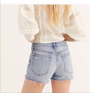 Free People Revolve Sofia Blue Button Fly Distressed Denim Jean Shorts Size 27