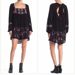 Free People Rhiannon Embroidered Babydoll Dress Black Purple Boho