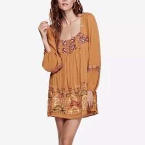 Free People Rhiannon Mustard Embroidered Mini Dress Boho - Sz Small
