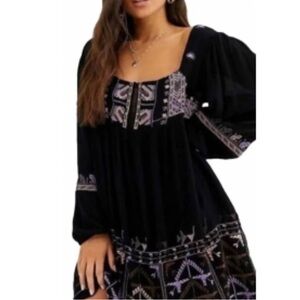 Free People Rhiannon Peasant Embroidered Mini Dress Size Small