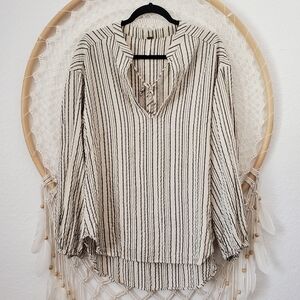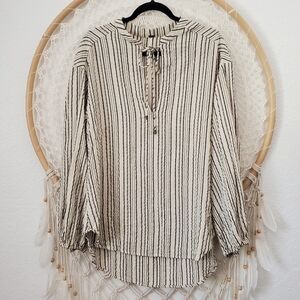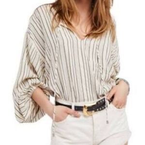 Free People Rhythm of The Night Tunic Ivory Striped Bishop Sleeve in wonderful condition. Small faint dots back sleeve, see last pic for details.