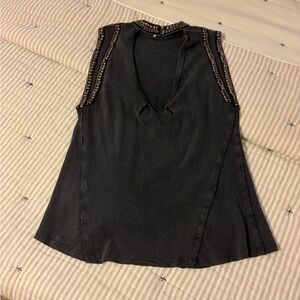 Elevate your style with this chic black sleeveless top, featuring eye-catching studded details. Perfect for any occasion. Excellent condition, worn just once.