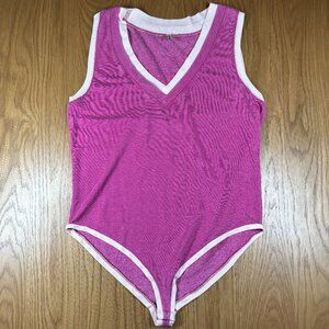 Free People Rib Trim V-Neck Bodysuit Pink Cotton Sleeveless – Women’s S