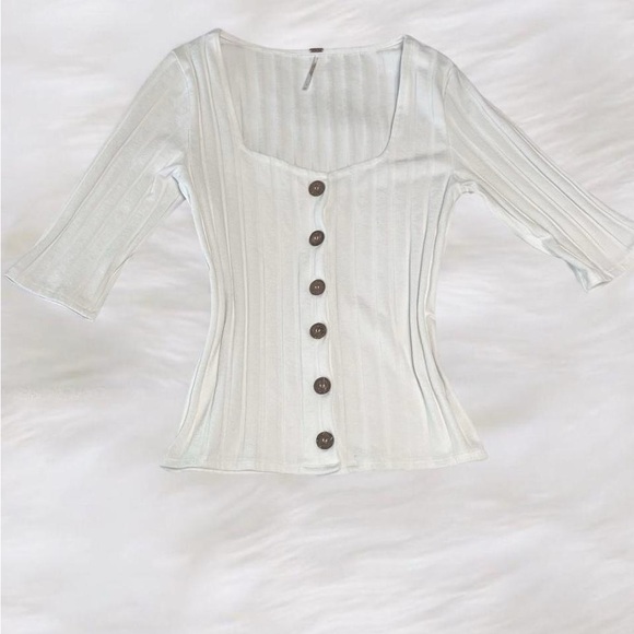 Free People Ribbed Button-Front Top