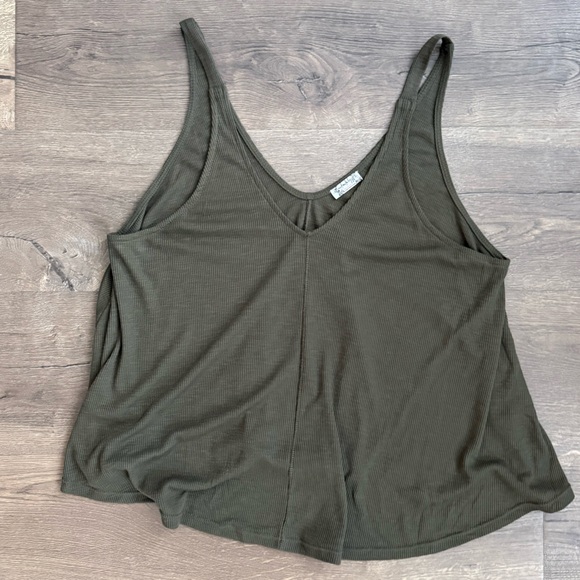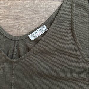 Chic forest green ribbed free people tank. V-neck with a relaxed fit.