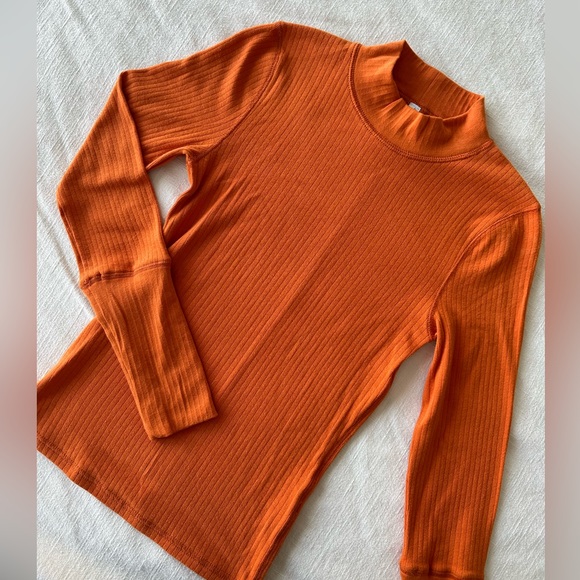 Essential ribbed long sleeve top featuring a mock neck,