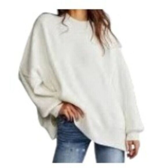 Free People Ribbed Tunic Sweater Optic White Small NWT