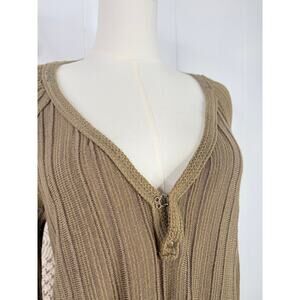 Free People Ribs and Ruffles Tunic Top Size Medium Olive Green Henley Peplum