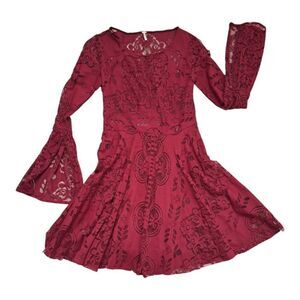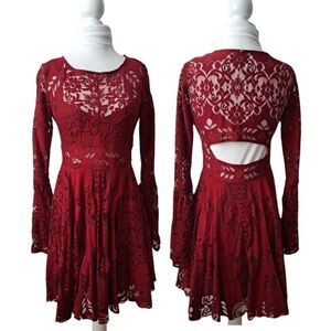 Free People Rich Red Lace Lovers Folk Song Dress Bell Sleeve Cut Out Boho Which Core Mini 2