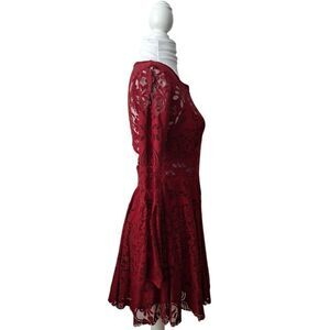 Free People Rich Red Lace Lovers Folk Song Dress Bell Sleeve Cut Out Boho Mini 2