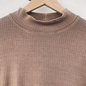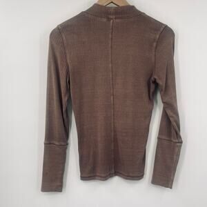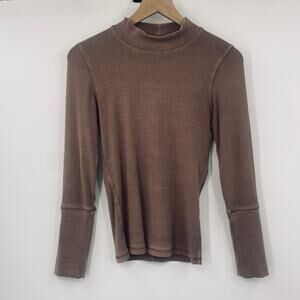 Free People Rickie Knit Top Long Sleeve Mock Neck Fitted Ribbed Coyote Taupe S
